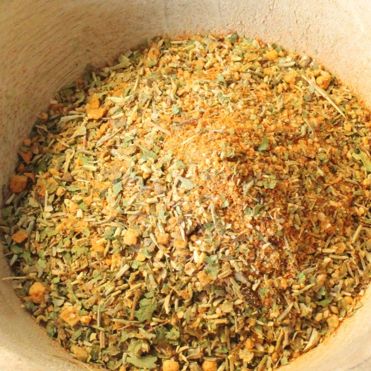 Composition : Romarin, thym, basilic, marjolaine, sarriette, persil, serpolet, ail, oignon, fleur de sel, MOUTARDE, paprika doux, coriandre, sésame, cumin, fenugrec.