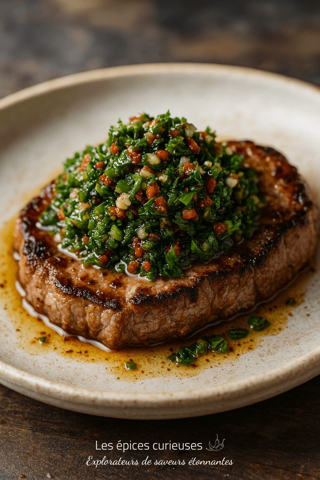 Le chimichurri est souvent appelé le “ketchup argentin” en raison de sa popularité comme condiment dans le pays. Il est traditionnellement servi avec de la viande grillée lors des asados, les barbecues argentins.