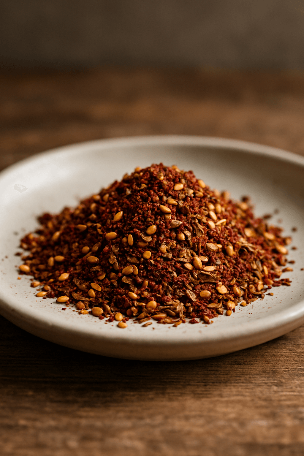 Ses nuances dorées et grenat rappellent les couchers de soleil sur les terres arides, tandis que sa texture granuleuse invite à une exploration sensorielle. Son goût se distingue par une alliance subtile et équilibrée, où l’acidité du sumac rencontre la douceur du sésame grillé, le tout relevé par la fraîcheur vivifiante du serpolet et de l’origan.