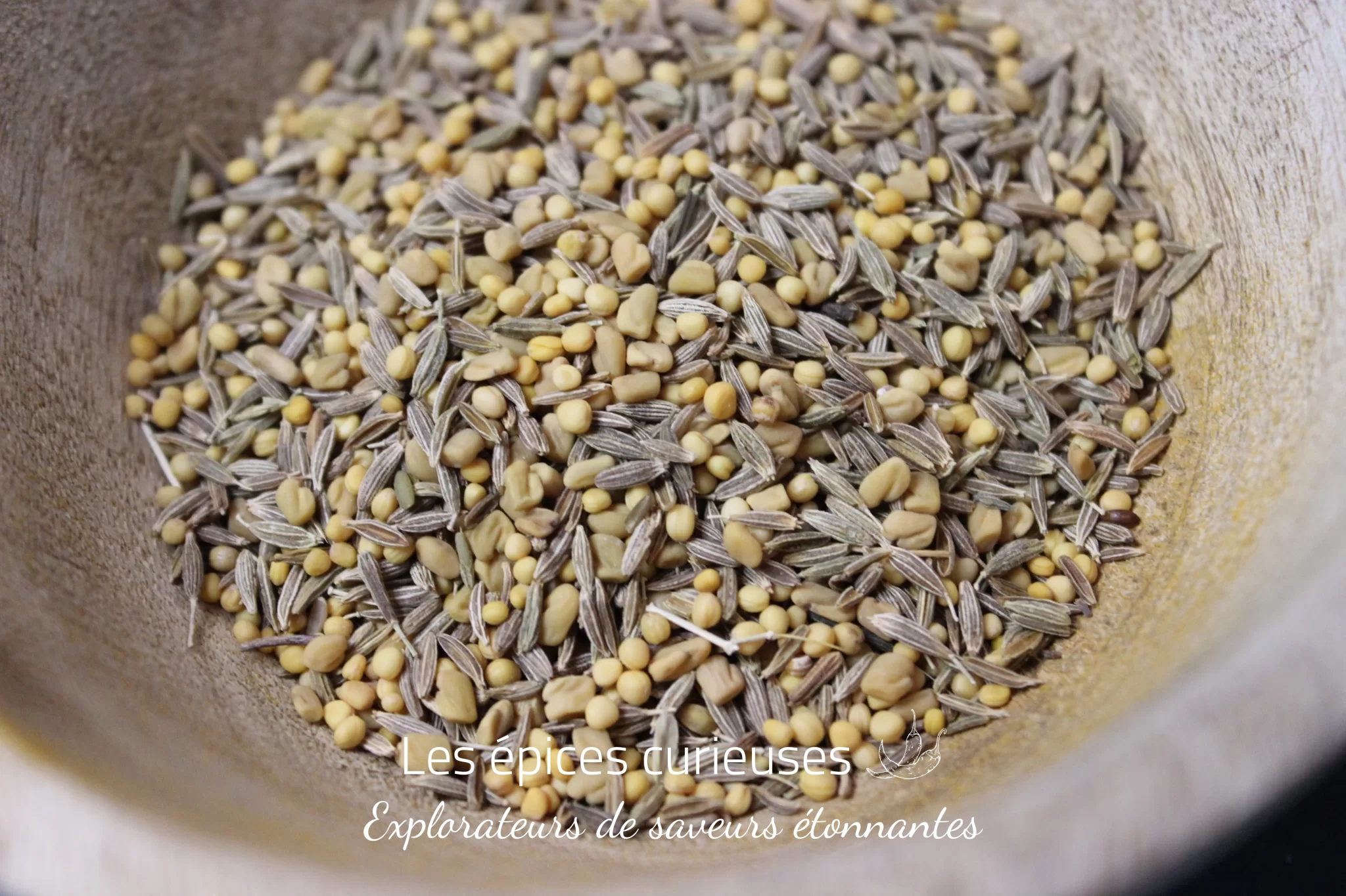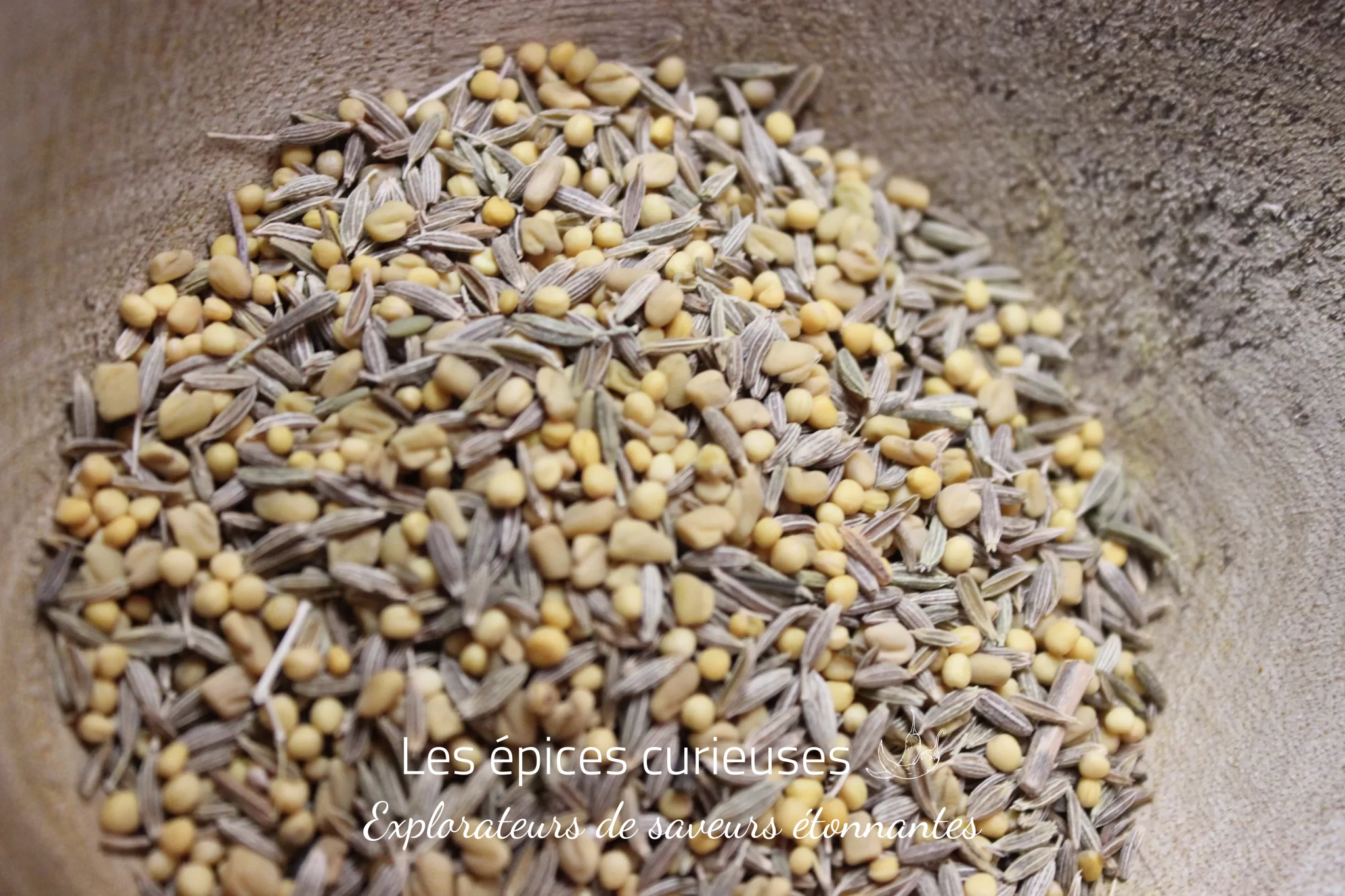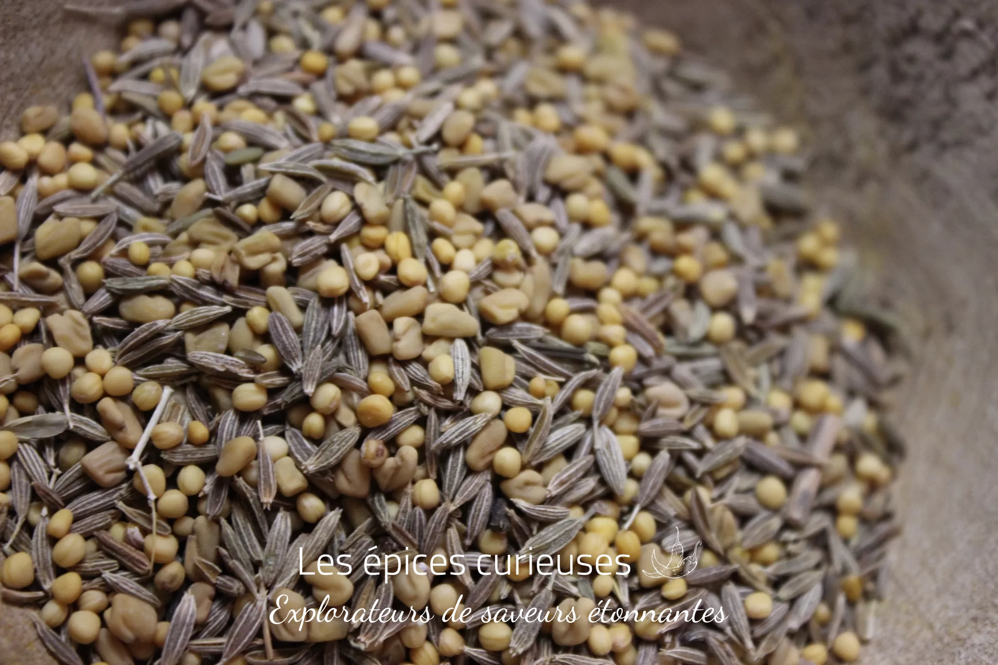 Découvrez les Graines à roussir des Épices Curieuses. Cette association de cumin, de fenugrec et de moutarde jaune ajoute une saveur profonde et complexe à vos plats. Faites ressortir l’authenticité de vos recettes avec cette épice qui éveille les sens et invite au voyage culinaire.