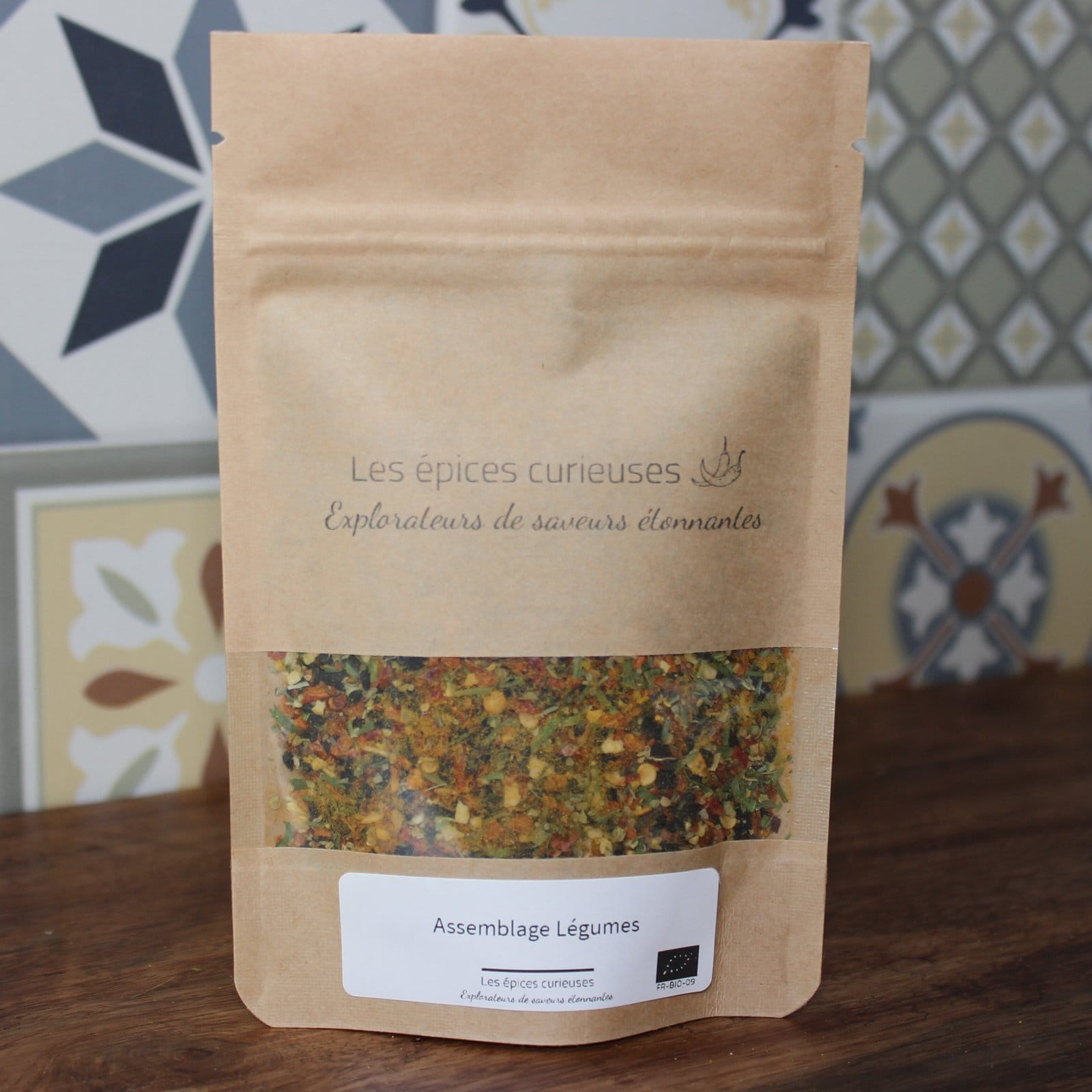 Découvrez le plaisir culinaire unique de notre Assemblage à Légumes signé Les Épices Curieuses. Cet harmonieux mélange d’épices et de légumes séchés offre une symphonie de saveurs exquises et authentiques. Sa texture croquante et sa couleur chatoyante égaient vos plats et éveillent vos papilles.