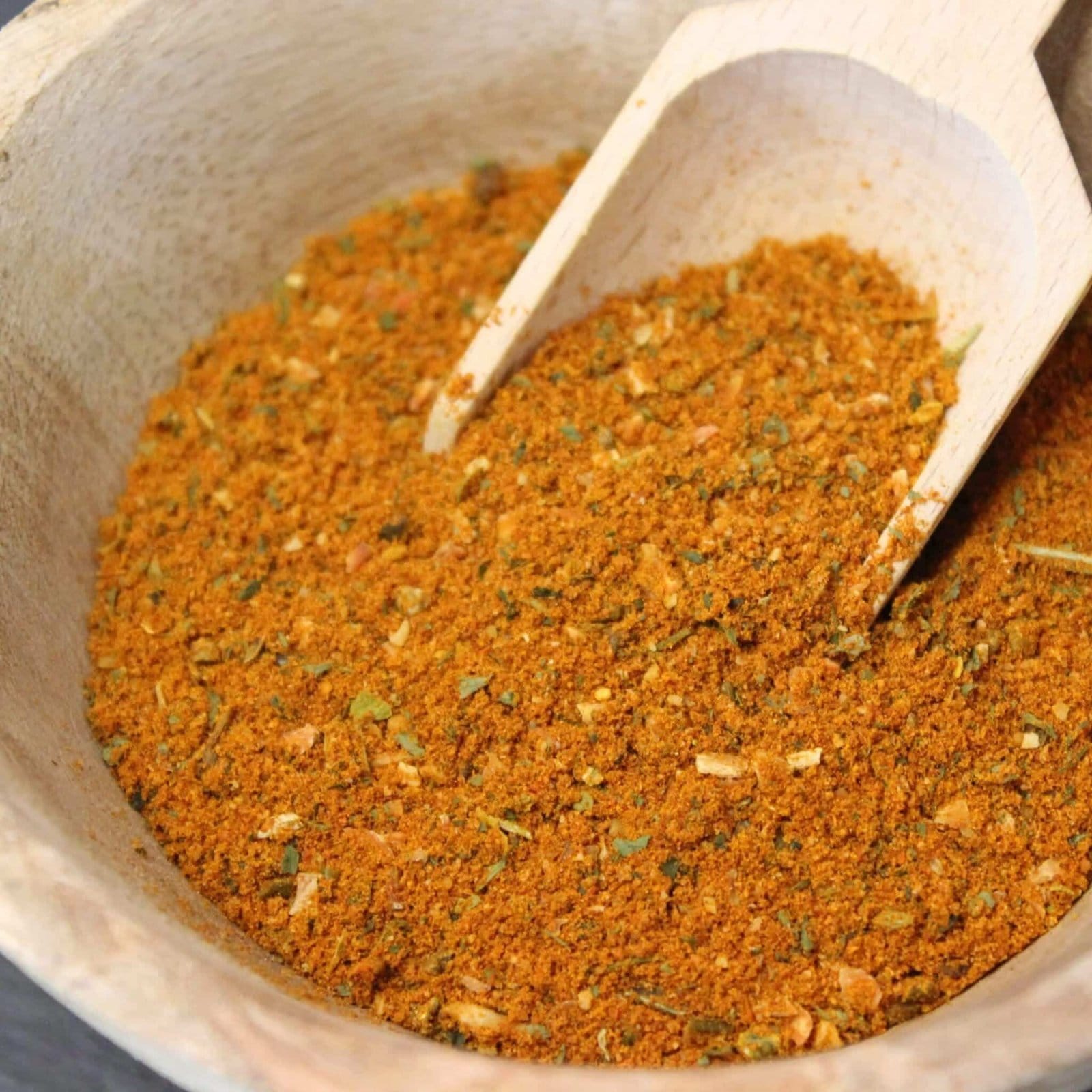Composition : Basilic, origan, marjolaine, ail, curcuma, piment doux, quatre épices, sel.