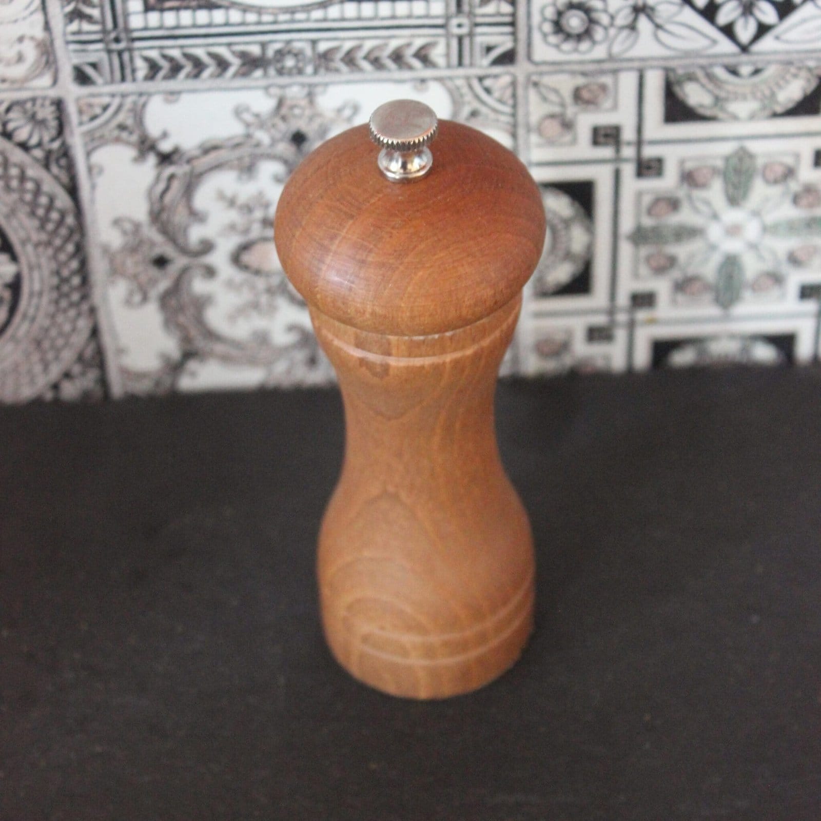 Découvrez notre Moulin à poivre en bois 13 cm, idéal pour sublimer vos plats. Conçu en bois de hêtre robuste et fini avec une enduction à l’huile d’olive pour une finition raffinée. Mécanisme en acier pour une mouture précise. Un must pour les passionnés de cuisine!