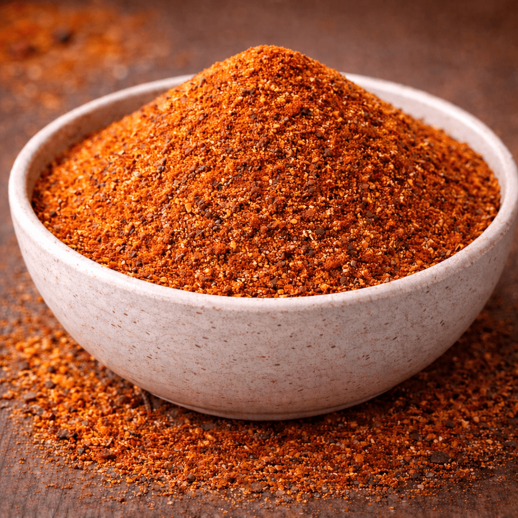 Paprika doux*, Cumin*, Coriandre*, Ail*, Oignon* fenouil*, Curcuma*, Poivre noir*, Piment doux*