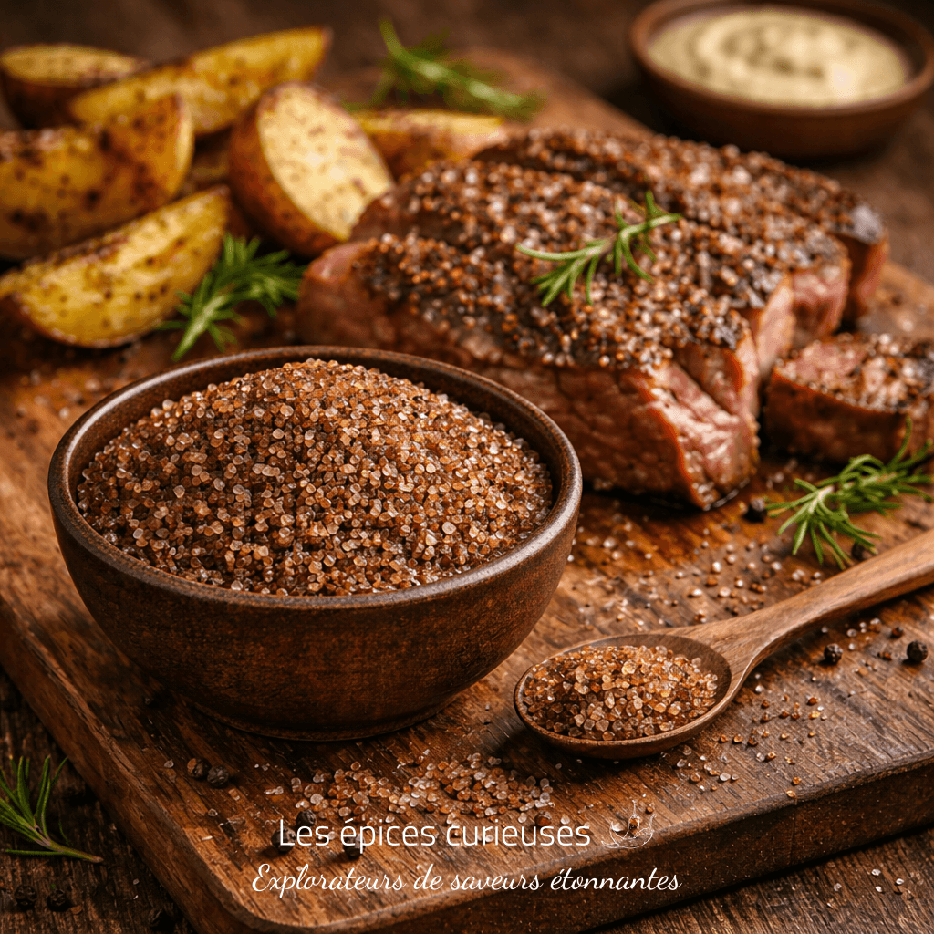 Découvrez notre Sel Fumé Grand Cru, un sel d’exception aux notes boisées et profondes, lentement fumé pour offrir une intensité aromatique unique. Idéal pour sublimer viandes, légumes, poissons et plats végétariens. Un indispensable Les Épices Curieuses pour une cuisine de caractère.