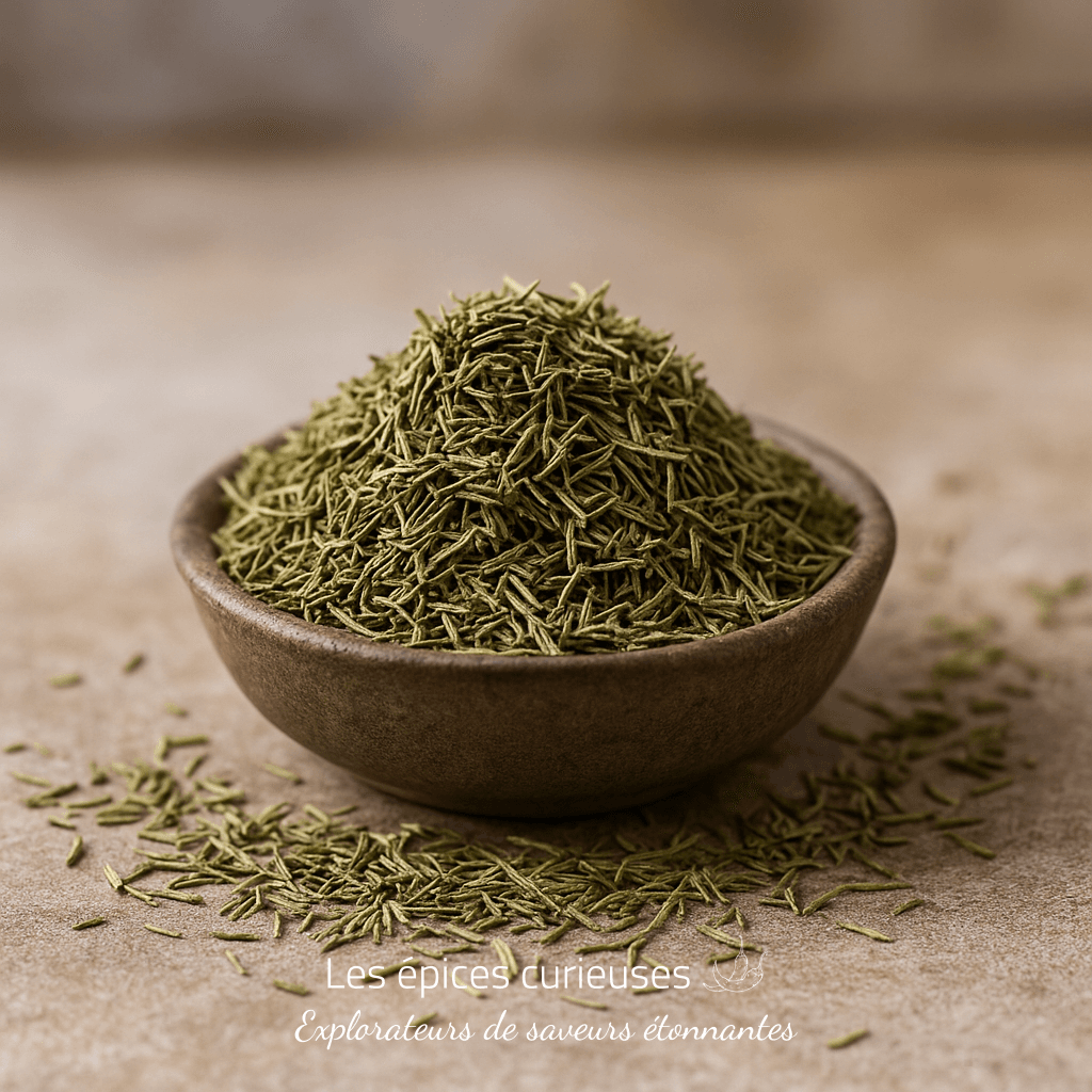 Plongez dans l’univers aromatique du Thym des Épices Curieuses. Cette herbe vivace aux petites feuilles persistantes dégage un parfum puissant et enivrant. Sa saveur piquante et légèrement citronnée, sa texture croquante, et sa couleur verte intense en font une épice de choix dans la cuisine du monde entier.